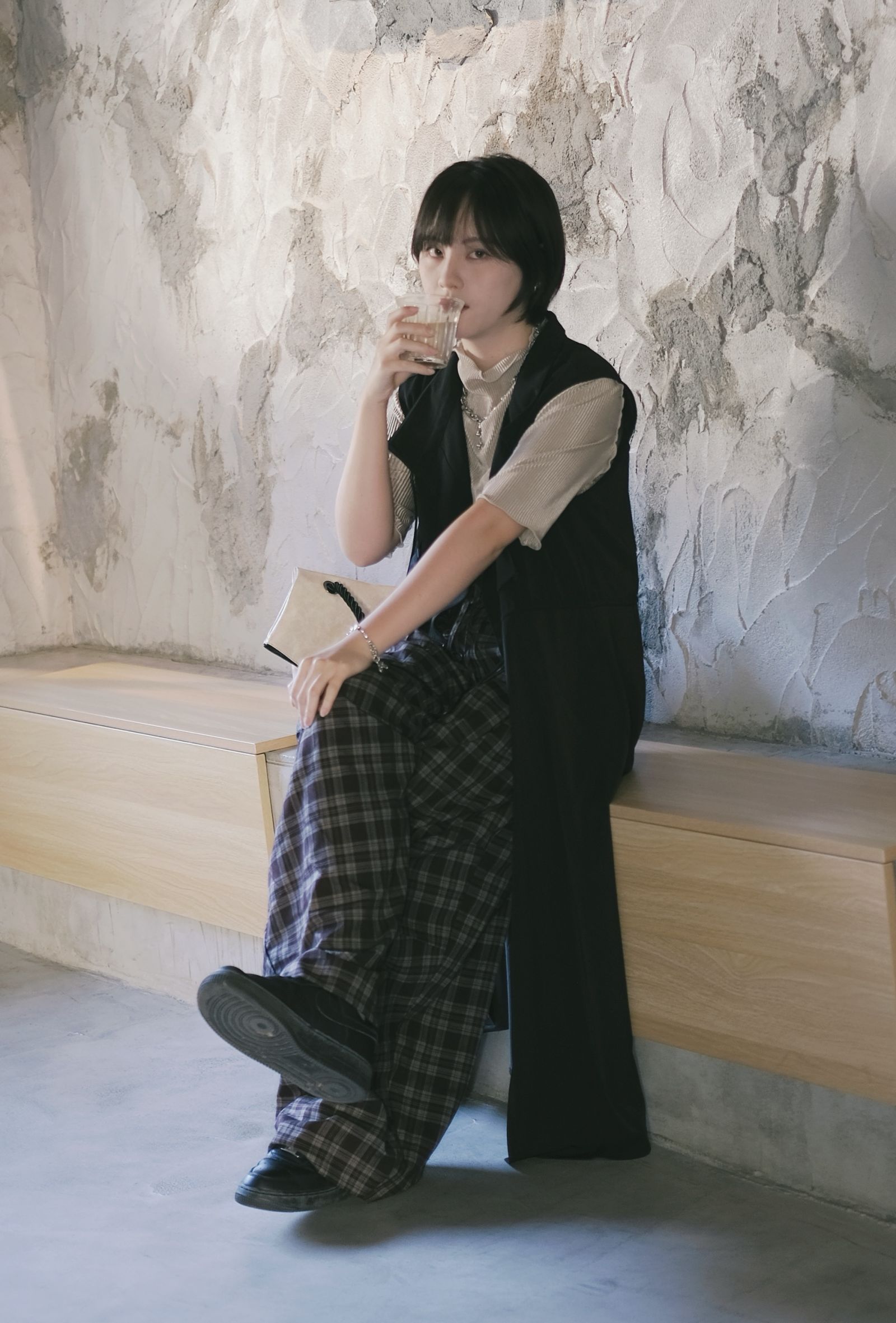 請先選高腰格紋落地長褲