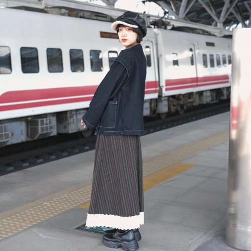 首頁- Jacket >外套 >《禧事臨門》綁帶 牛仔 圓領 挺版 外套 E23