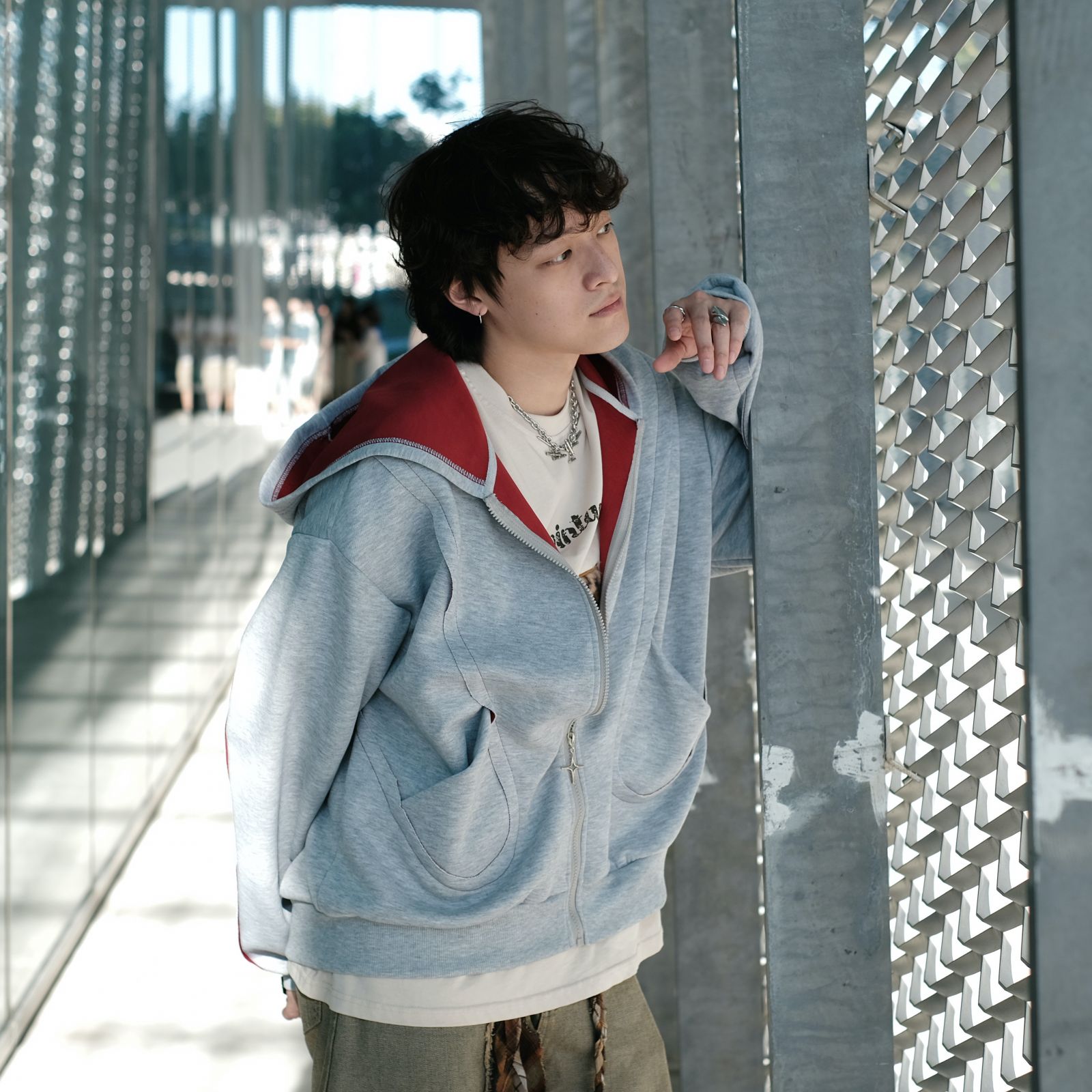 首頁- Jacket >《禧事臨門》休閒 撞色 連帽 短版 落肩 拉鍊 棉外套E247
