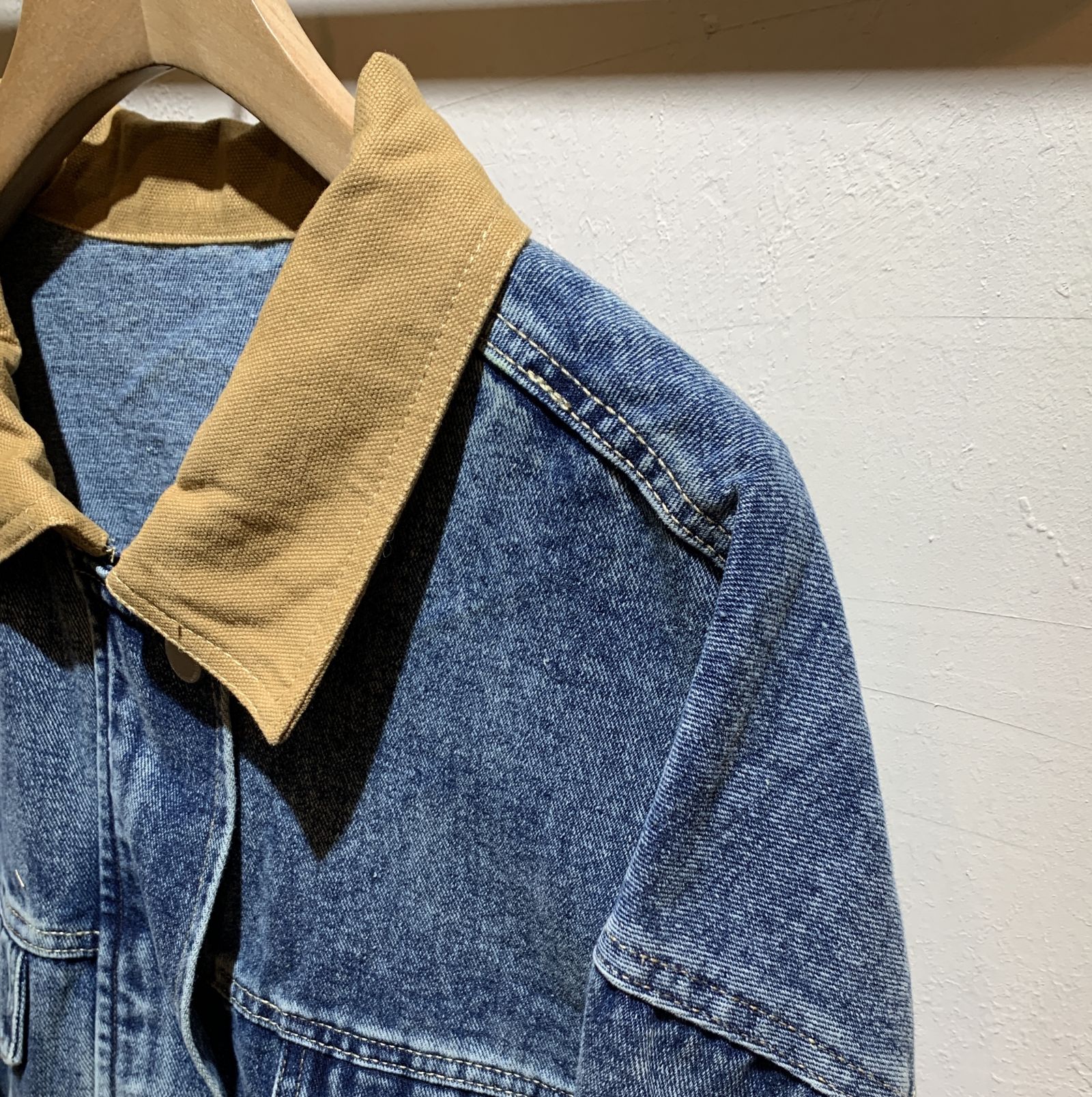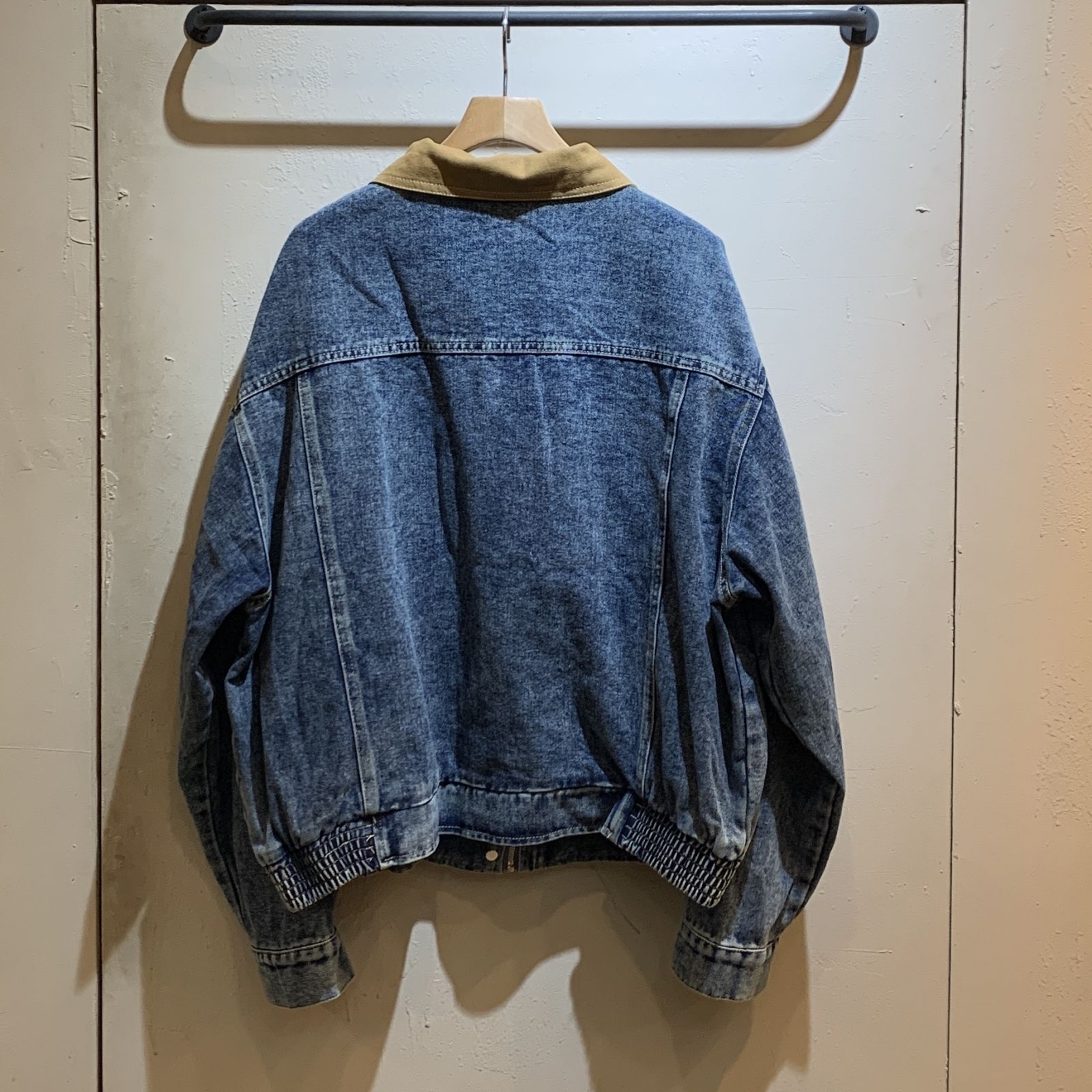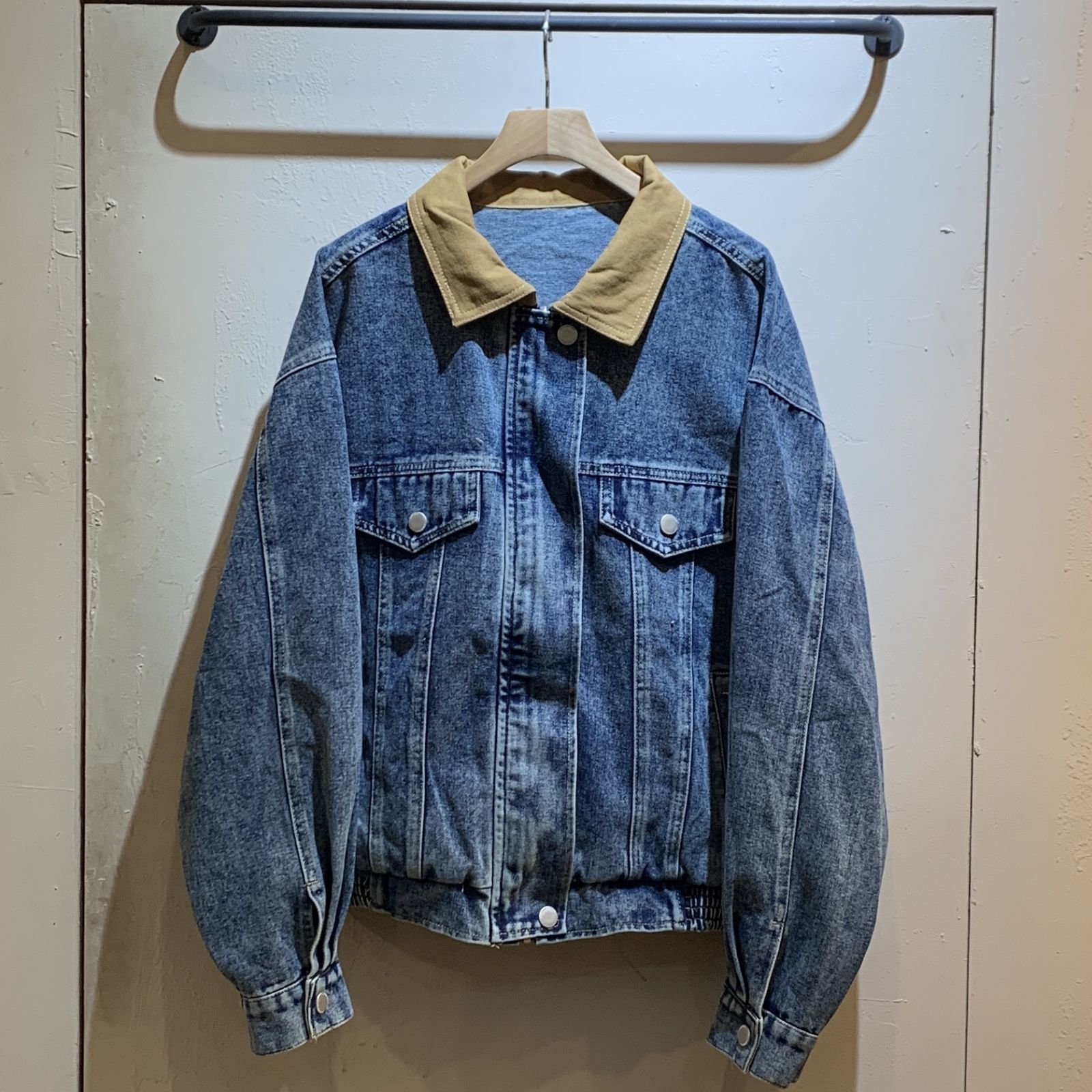 商品復古 撞色牛仔 下擺鬆緊拉鍊外套: