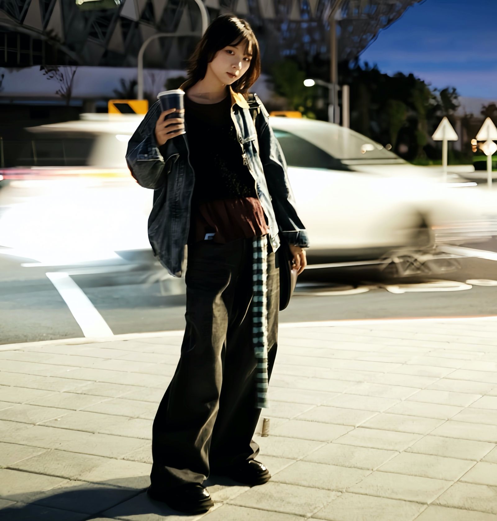 請先選復古 撞色牛仔 下擺鬆緊拉鍊外套