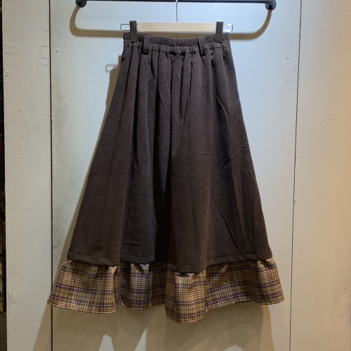 首頁- New Arrival >NEW >《禧事臨門》 鬆緊 燈芯絨 拼接 格紋 A字 長裙B607