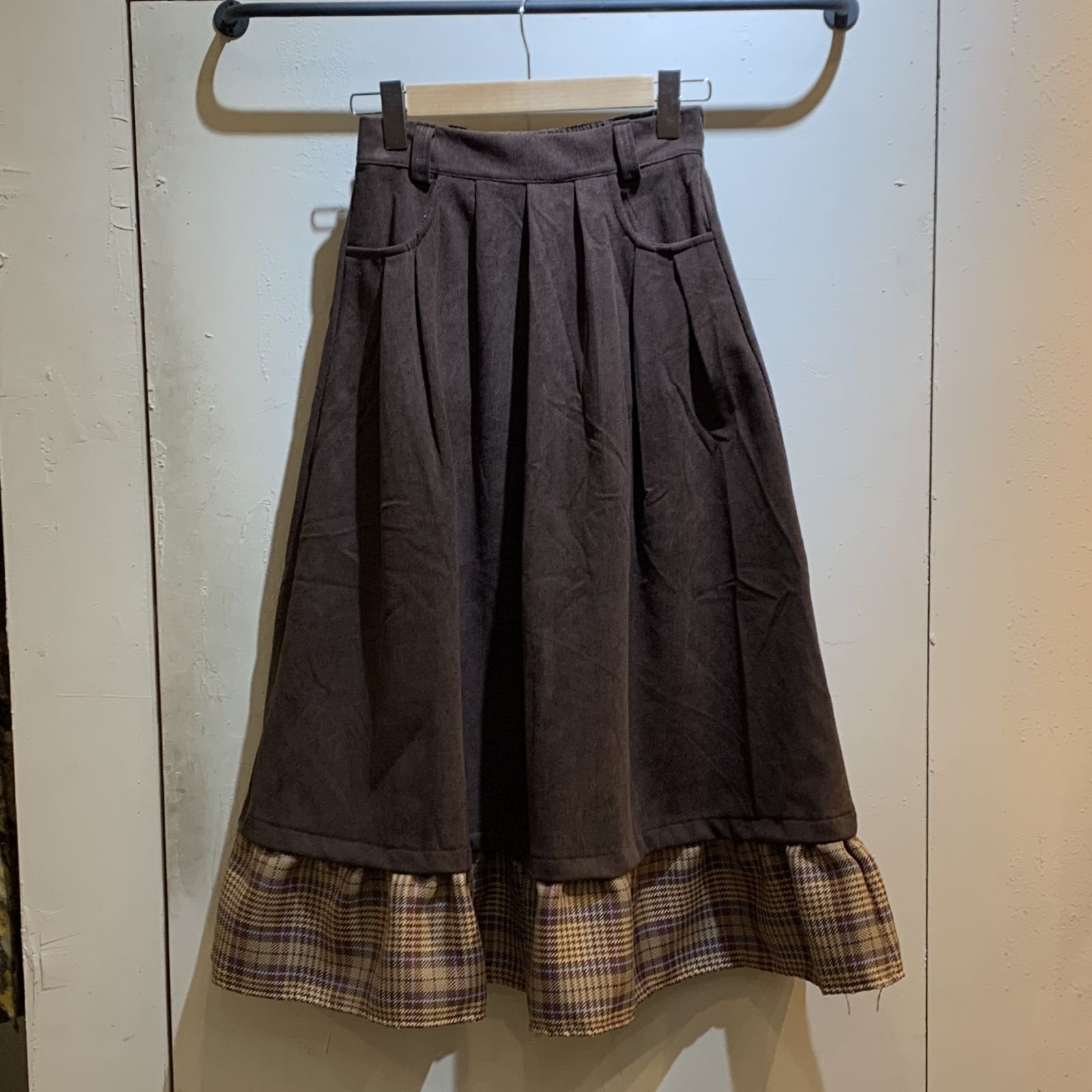 商品鬆緊 燈芯絨拼接格紋A字長裙B607: