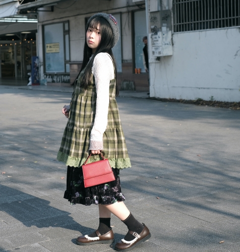 首頁- Sale >歡慶中華隊勝利 >《禧事臨門》復古 細肩帶 格紋 毛呢 傘狀 背心裙 上衣 E300
