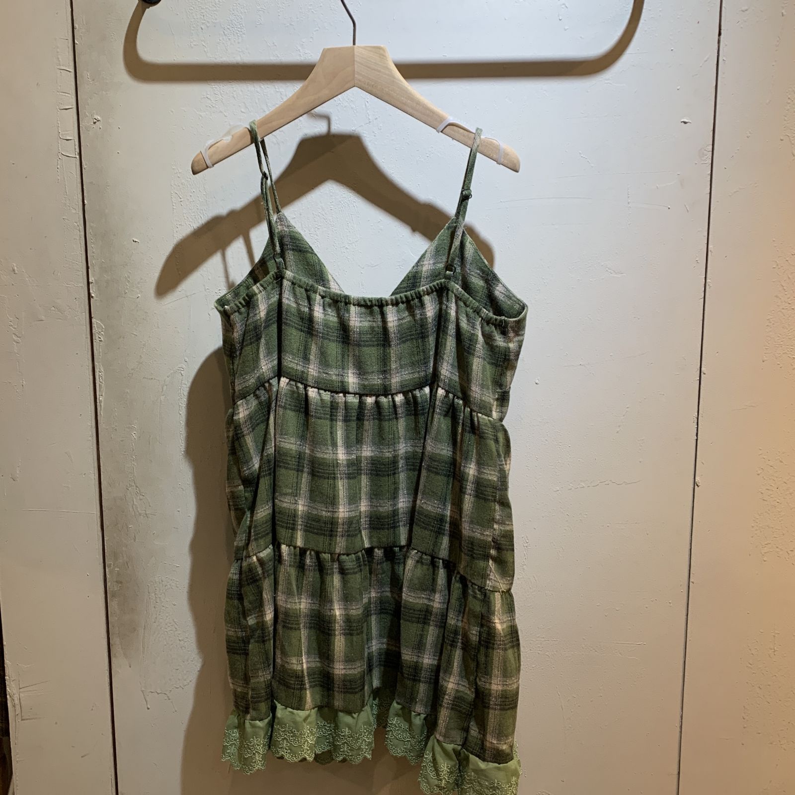 商品復古細肩帶格紋毛呢傘狀背心裙上衣: