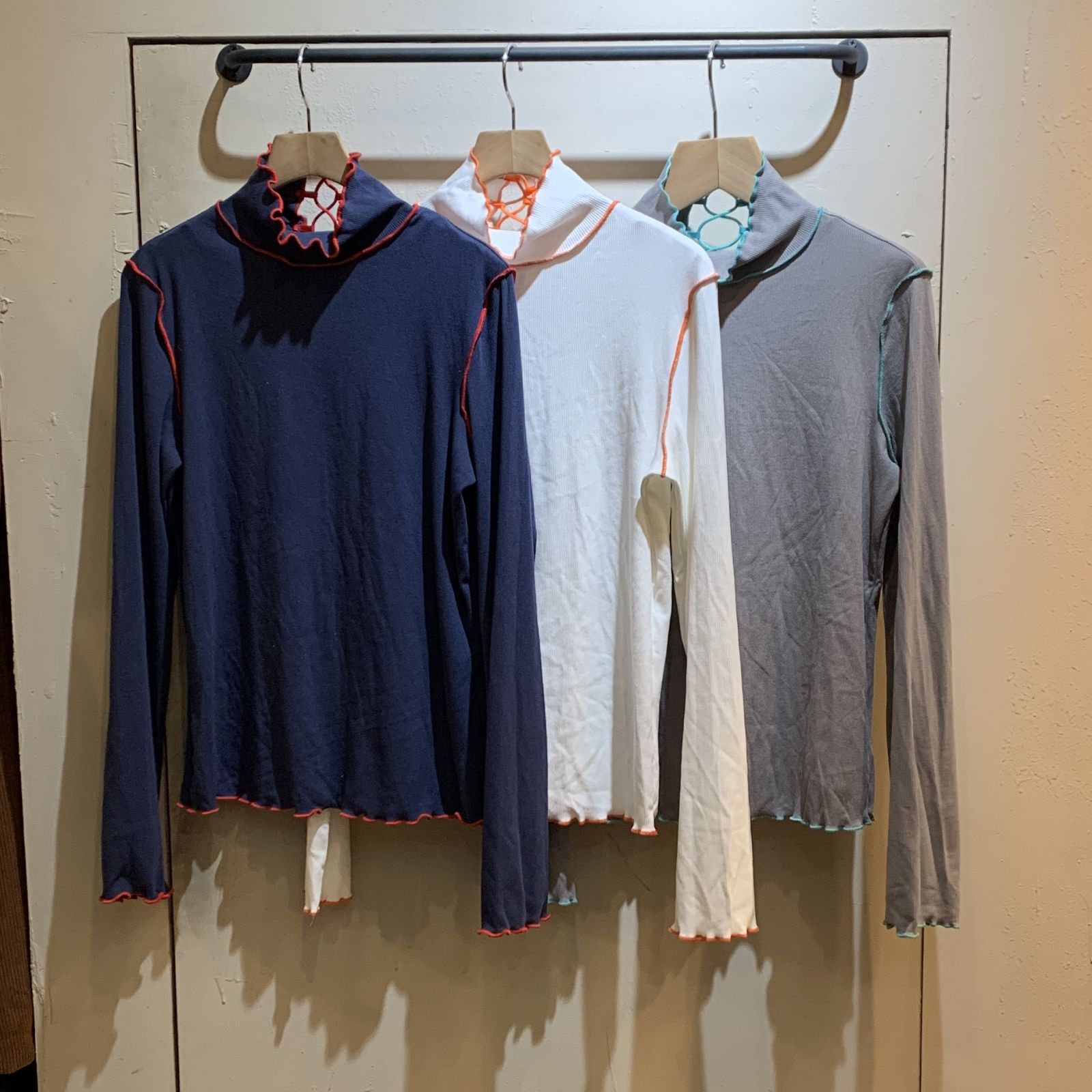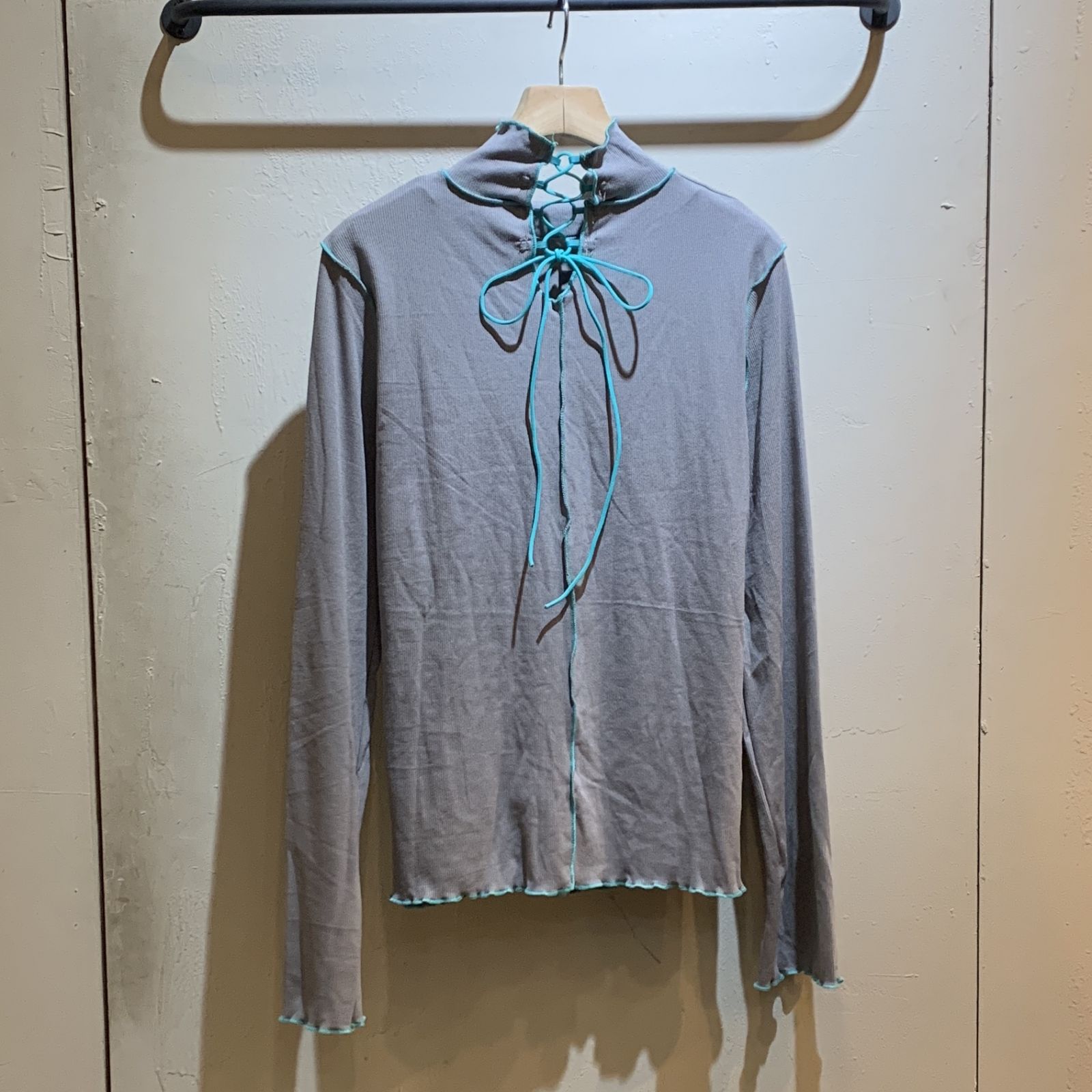 備註:高彈性/木耳邊/高領/車線跳色設計/後頸綁繩