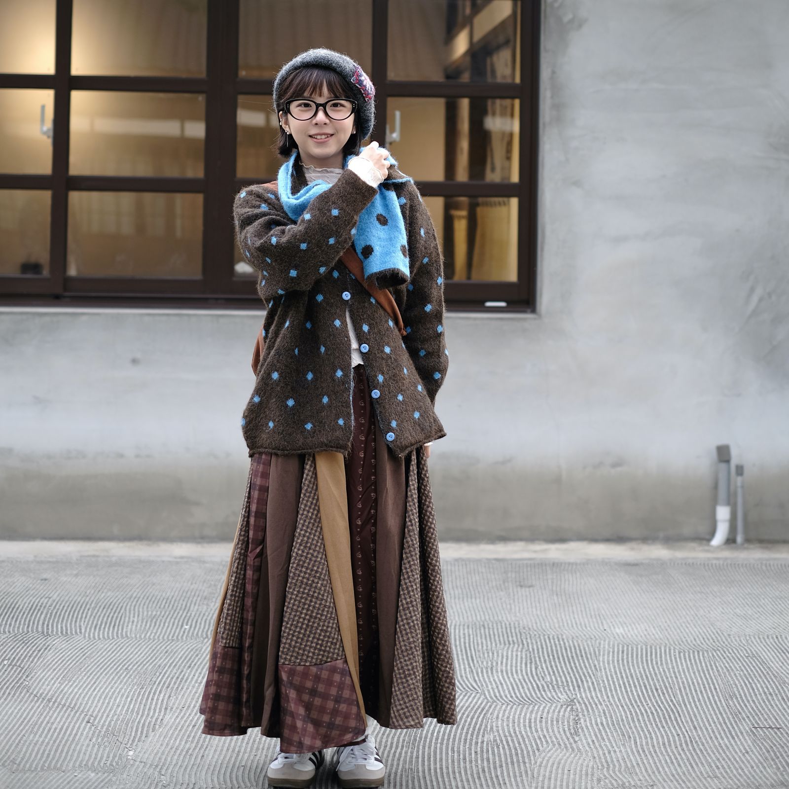 (咖色配色圍巾)
