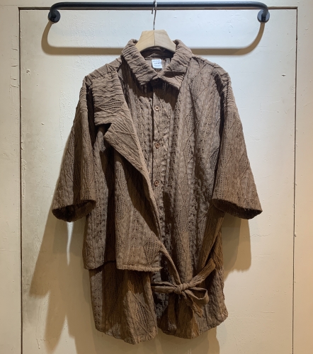 • 《禧事臨門》針織 菱格 不規則 拼接 綁帶 短袖 襯衫B661