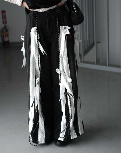 • 《禧事臨門》牛仔 拼接 蕾絲 remake 改製 抽繩 運動 落地 寬褲 J73