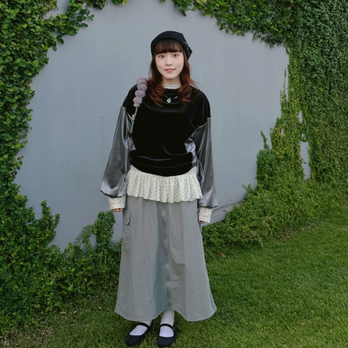 SEE MORE《禧事臨門》鬆緊 金絲絨 緞面 拼接 網紗 長裙B632