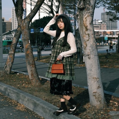 SEE MORE《禧事臨門》復古 細肩帶 格紋 毛呢 傘狀 背心裙 上衣 E300