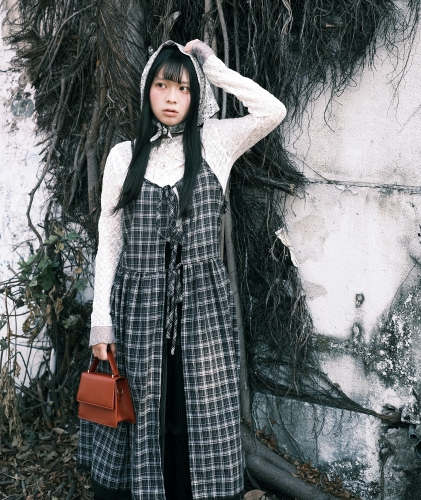 SEE MORE《禧事臨門》格紋 蕾絲 綁帶 連身 外罩 B678