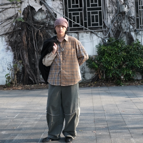 SEE MORE《禧事臨門》復古 格紋 拼接 薄款 長襯衫 B680