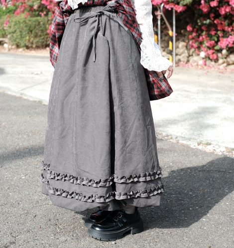 SEE MORE《禧事臨門》鬆緊 格紋 毛呢 傘狀 五分裙 E299