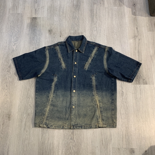 《禧事臨門》牛仔 造型 街頭 刷舊 寬鬆 挺版 短襯E202