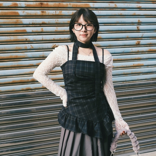 • 《禧事臨門》 細肩 格紋 不規則 裙擺 背心C76