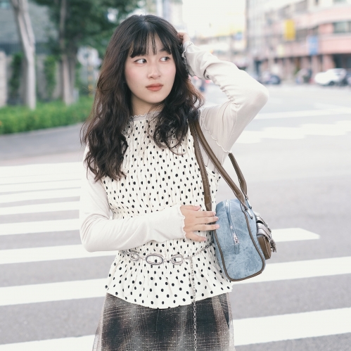 SEE MORE《禧事臨門》點點 透膚 純欲 彈性 圓領 下擺蛋糕邊 上衣 E191