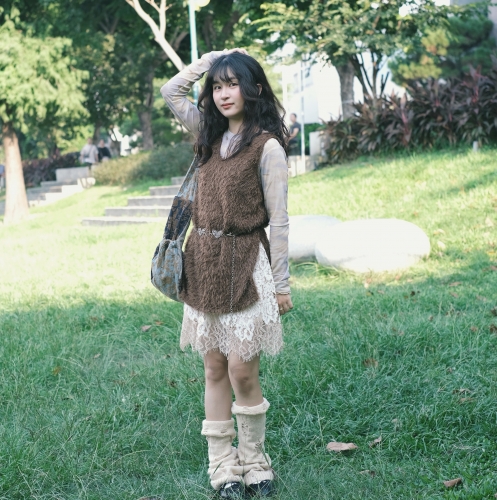 《禧事臨門》 復古 毛毛 V領 側開叉 中長版 背心 E198